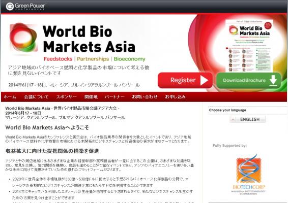World Bio Markets Asiaのカンファレンスと展示会は、バイオ製品業界の関係者を対象としたイベントであり、アジア地域のバイオベース燃料や化学物質の市場における未開拓のビジネスチャンスと投資機会の探求が主なテーマとなります。