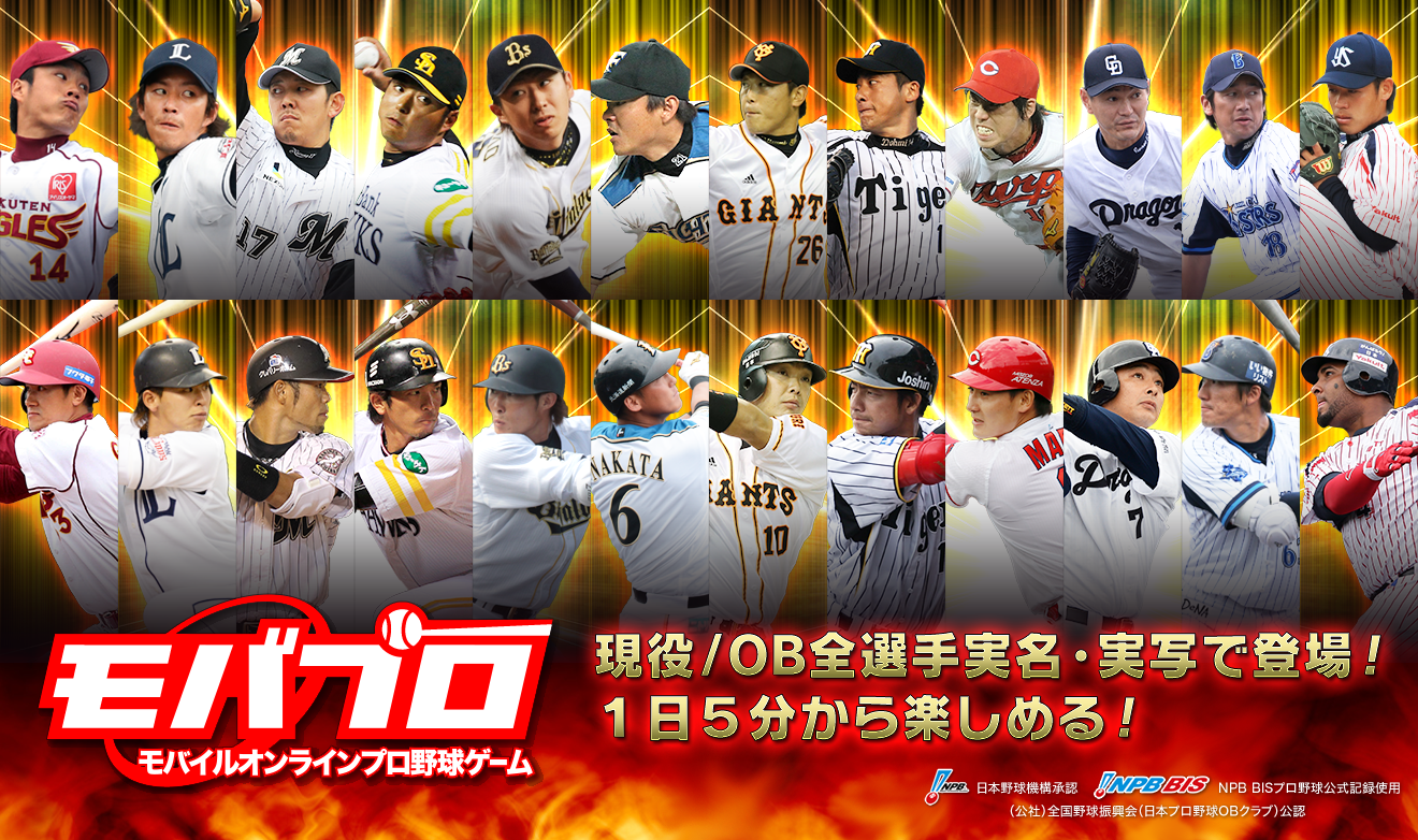 「モバプロ」は、「1日5分で楽しめる」をキャッチフレーズに、ソーシャルゲームでは初めてプロ野球全12球団の実名・実写の選手カードを採用したモバイルオンラインプロ野球ゲーム(一般社団法人日本野球機構承認)として、多くのユーザーから支持を受け、国内会員数260万人という不動の人気を誇ります。