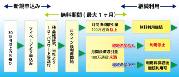 さらに、条件を達成されたお客様は、翌月も利用料無料でリモートデスクトップを提供させていただきます。また、条件を達成されなかったお客様にも、決済取引数量に応じた利用料の割引制度をご用意しております。