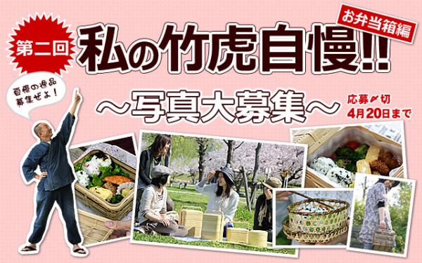 暖かな季節になり、お弁当を持ってお出掛けするにはもってこいの季節になりました。全国各地で桜の開花が聞こえ、これからお花見に行かれる方も多いのではないでしょうか。ご家族やご友人と一緒に食べるお弁当や、学校や職場へ持っていくお弁当をパチリ!と取っていただき、私の竹虎自慢に応募してみませんか。皆様からの沢山のご応募お待ちしております。