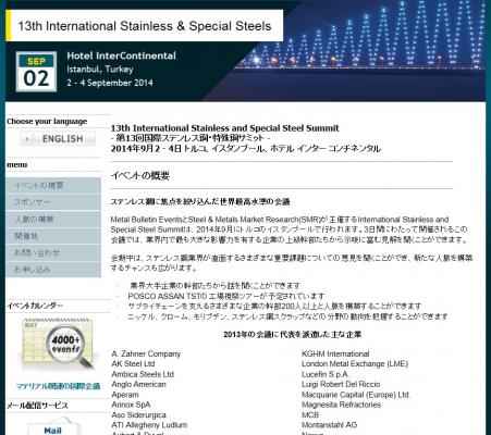 会議:「13th International Stainless and Special Steel Summit- 第13回国際ステンレス鋼・特殊鋼サミット」