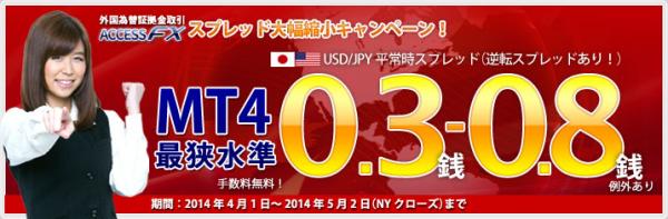 この度、当社外国為替証拠金取引「アクセスFX」では、カバー先金融機関のご協力もあり、期間限定ながら大幅スプレッド縮小キャンペーンを実施いたします。