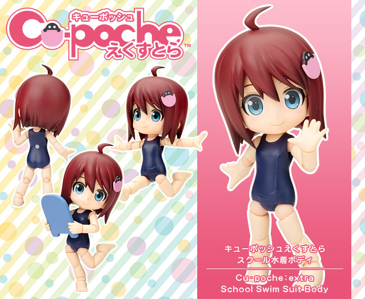 株式会社壽屋(本社:東京都立川市曙町/ 代表:清水一行)は、可動フィギュア「キューポッシュ」シリーズの遊びの幅が広がる新シリーズ「キューポッシュえくすとら」を発表。第1弾「スクール水着ボディ」を2014年7月に発売予定。