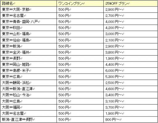 ・対象路線・価格一覧: