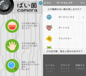 「ばい菌カメラ」は撮影した手や歯に、本当にそこにばい菌がいるように表示させて、お子様に手洗いや歯磨きを促すためのアプリです。