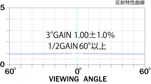 ・さらに高くなった拡散性:3°ゲイン1.00から始まる反射特性は60°の視聴位置でも0.92という、ほぼフラットな曲線を描きます。(図)ピュアマットIIIに比べより完全拡散に近づきました。
