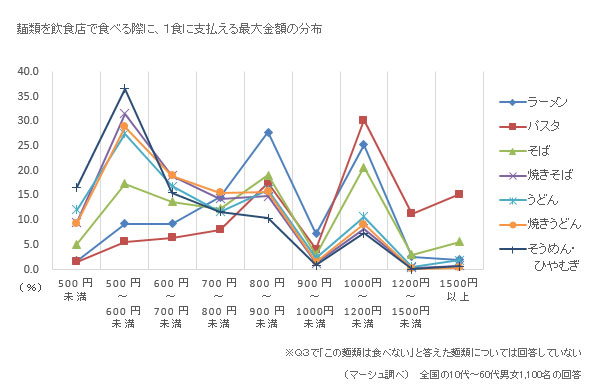 ・種類別-外食でその麺類を食べる際、1食に支払える最大金額