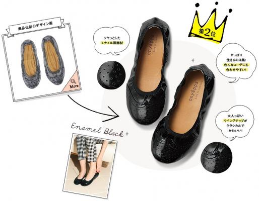 エナメルブラックのきれいめ素材がおしゃれ!! ウィングチップ風の切り替えが大人っぽく、パンツスタイルにもスカートスタイルにもしっくりなじむ使いやすさに注目!