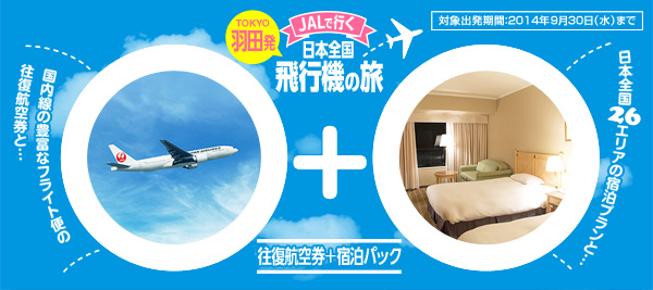 『JALで行く日本全国飛行機の旅』では、 JAL往復航空券のフライト便指定が可能で、宿泊は料金重視のホテルから高ランクホテルまで、日本全国26エリアの宿泊施設を幅広く用意しており、お客さ まの旅行スタイルに合わせた選択が可能です。対象出発期間は5月6日~9月30日で、例えば往復航空券(羽田⇔金沢)と宿泊1泊(金沢国際ホテル)を 17,800円~、往復航空券(羽田⇔大阪)と宿泊1泊(アークホテル大阪心斎橋)を22,400円~で販売し※、気軽に行ける国内旅行を提案します。