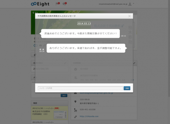 PC版Eightにメッセージ機能が追加されました。オフィスでPCで作業しているときでも、Eightでコミュニケーションをとることができます。