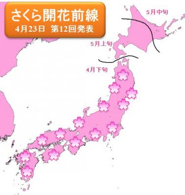 また、大型連休に入ると北日本で気温が高くなり、北海道では前回の予想より開花が3日ほど早まりました。最も早く咲く函館で5月1日、札幌は3日の予想で、ともに連休中に咲き始めるでしょう。早ければ連休後半には、見頃となる所もありそうです。最も遅く咲くのは根室で、昨年より一週間ほど早い5月20日になるでしょう。
