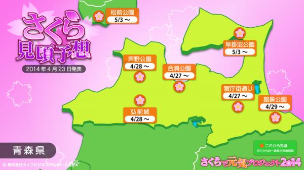 「さくらさくコール」は、毎週水曜日に最新のさくら開花・見頃予想や登録地点の開花情報をプッシュで教えてくれるスマートフォン向けアプリです(無料、Android版、iPhone版)。登録地点は、さくらで元気プロジェクトで開花・見頃予想を行っている全国136地点。ゴールデンウィーク中に東北や北海道へお花見旅行に行かれる方は、ぜひご活用下さい!