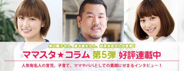 大好評の大型インタビュー企画『ママスタ☆コラム』の第五弾には、FUJIWARA藤本敏史さん、熊田曜子さん、蛯原英里さんにご登場いただきます。