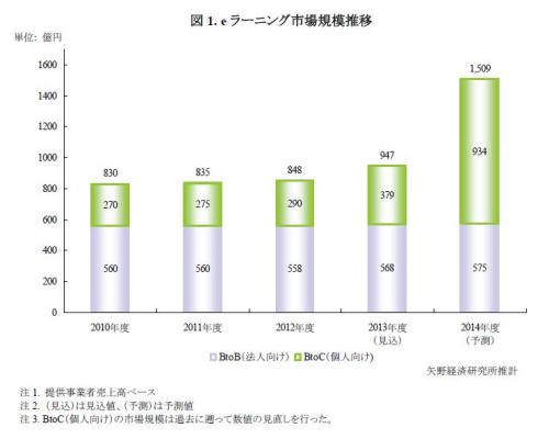 本調査におけるeラーニング市場とはインターネット等のネットワークを利用した学習形態を対象とし、ゲーム機やパソコン向けソフトウェアを利用したものを除く。また学習コンテンツとしては、ビジネス、教科学習、語学、IT技術、資格取得、教養・雑学など幅広いジャンルを含む。