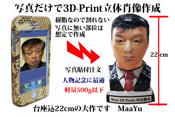 全長約22cmの360度全体のある写真立体胸像を作成するものです。