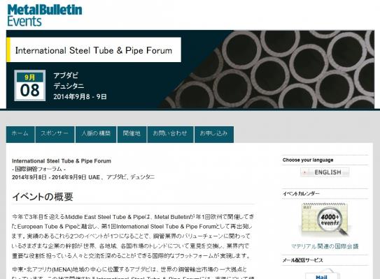 株式会社グローバル インフォメーションでは、皆様の利便性を図る為に、日本語、韓国語、中国語で「International Steel Tube & Pipe Forum-国際鋼管フォーラム」の情報を提供するとともに、会議の参加のお申し込みを承っております。