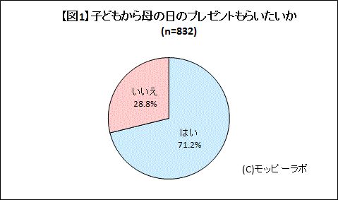 図表参照:【図1】子どもから母の日のプレゼントをもらいたいか(n=832)