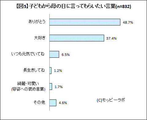図表参照:【図5】子どもから母の日に言ってもらいたい言葉(n=832)