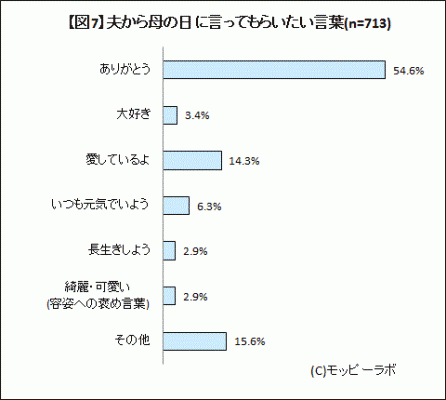 図表参照:【図7】夫から母の日に言ってもらいたい言葉(n=713)