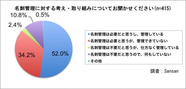 86.2%以上のビジネスマンが「名刺管理の必要性を感じている」が、そのうち34.2%は「名刺管理をできていない」ことが分かりました。