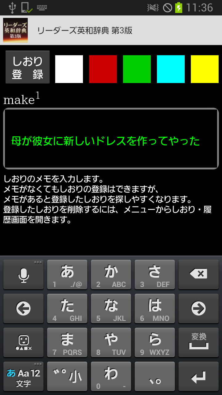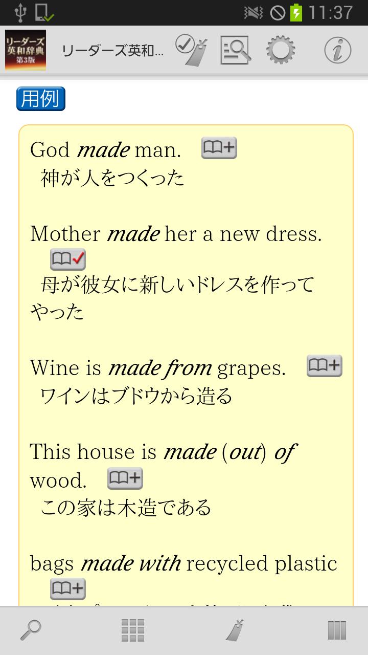 ●収録されている「用例」や「成句」をしおり登録することができます。