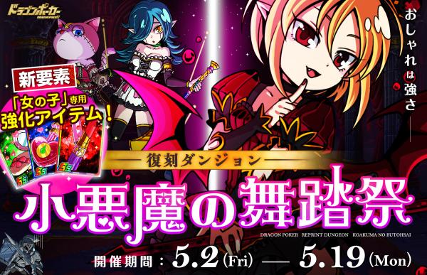 前回・前々回の開催期間中に、ドラゴンポーカーをまだプレイしていなかった方や、限定SSレア「小悪魔リノ(妹)」を入手できなかった方々も、更なるパワーアップを遂げ復刻開催する当ダンジョンを、ぜひお楽しみください!