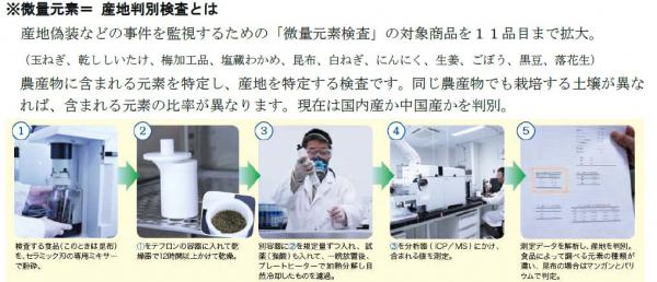 産地偽装などの事件を監視するための「微量元素検査」の対象商品を11品目まで拡大。