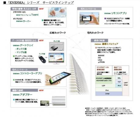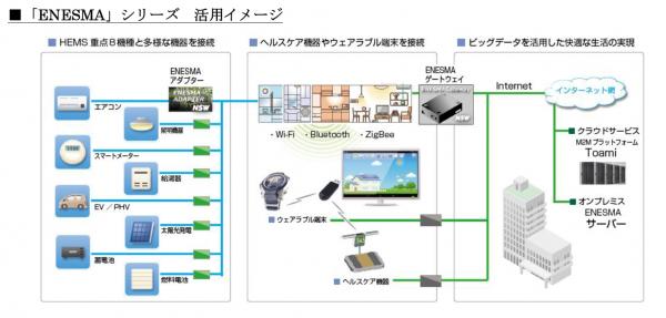 「ENESMA」は戸建て住宅やマンション、商用ビル向けのエネルギー管理システムの総称です。2013年5月に提供を開始した「ENESMA Home」は、特定メーカーや規格などに縛られない相互接続性の高いHEMS環境の実現をコンセプトに、ECHONET Liteに準拠した家電製品や設備機器を宅内や外出先からスマートフォンやタブレット端末を用いて制御し、電力使用量などをリアルタイムでモニタリングするHEMSソリューションです。