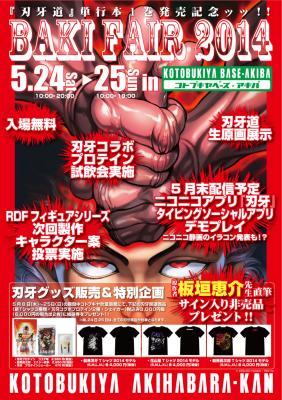 株式会社壽屋(本社:東京都立川市曙町/ 代表:清水一行)は、2014年5月24日(土)・5月25日(日)の2日間、コトブキヤ秋葉原館(東京都千代田区外神田1-8-8)にて「週刊少年チャンピオン」にて連載中の人気作品『刃牙道』のイベント「BAKI FAIR 2014」の開催を予定しています。