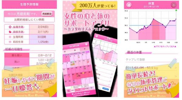 アプリ名称:『女性のリズム手帳』 価格:無料