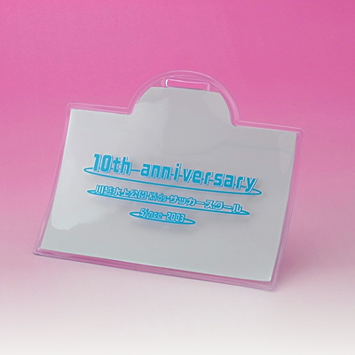 2003年設立の少年サッカークラブチーム(川越市)が、主催する<サッカースクール>への参加賞として制作したパスケース。「スポーツを通して人間的に大きく成長」を理念に、地域に根差し10周年を迎えたという同スクールのシンボルを名入れされました。