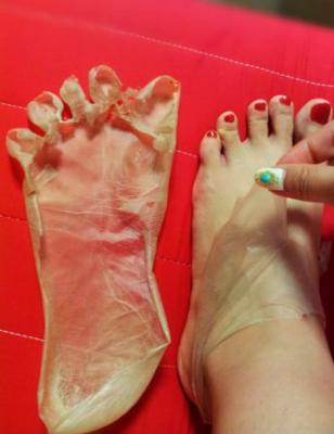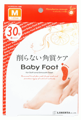 ベビーフットシリーズの主要商品である「ベビーフット イージーパック」シリーズは、足の裏に溜まった角質を削ることなく履くだけで自然に落とすフットケア商品です。フルーツ酸をベースに処方されたジェルローションに足を浸すだけで、足裏の角質層に浸透し、古くなった角質のターンオーバーを促し、余分な角質を自然の摩擦で優しく落とします。