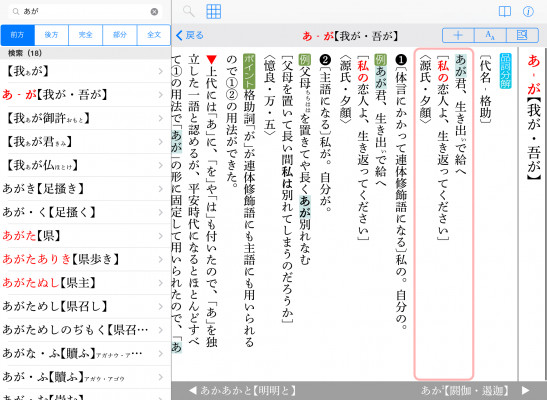 ●インクリメンタルサーチ対応(部分検索/全文検索除く)?文字を入力すると候補見出し語が表示されるので、うろ覚えでも見つけやすい