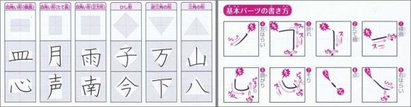 ・「とめ」、「はね」ではなく「ピタ」、「ピョン」など書き方は音で覚える / ・スキマを同じにする など