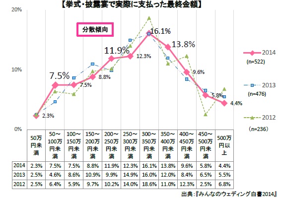 一方で、挙式・披露宴にかける金額は分散傾向