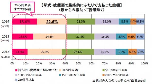 特に、年々「持ち出し費用は一切なかった」花嫁花婿が増えている傾向にあることがわかります。