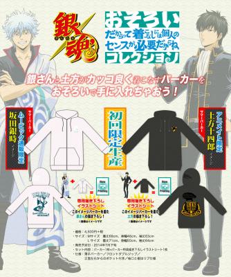 「おそろいコレクション」パーカー特典イラストシートは、イメージパーカーをそれぞれ着た銀時、土方の描きおろしイラストを予定しております。