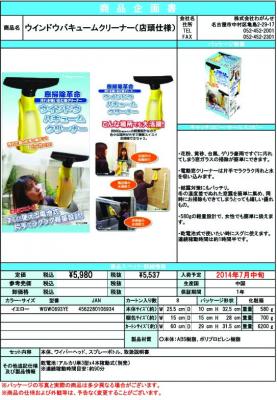 『ウインドウバキュームクリーナー』2014年7月中旬販売予定。