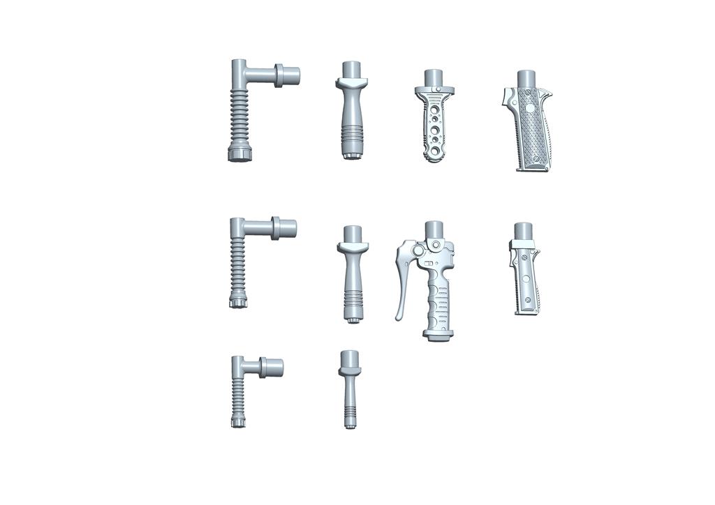 3mm径接続の汎用グリップパーツ。各種プラモデルやアクションフィギュアに対応できるようにバラエティに富んだデザイン、サイズをラインナップ。