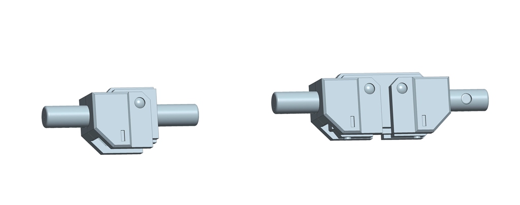 HIPS関節にメカニカルデザインのアイテムが登場。1重関節と2重関節を製作することが可能です。接続径は3mm径となっているので発売中の3mm径の穴が空いているパーツ同士をつなぎ合わせる関節として使用可能。