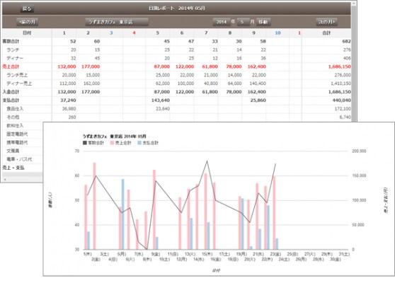 2013年12月にリリースしたバージョン13.7.0にて、日々の売上や経費を日計表形式で登録するだけで会計帳簿から決算書までを自動的に作成できる「日計表入力機能」を搭載いたしました。新バージョン14.4.0では、日計表機能を拡充いたします。日計表グラフ表示機能を追加し、売上や客数など日々の経営データの視認性を向上させるほか、日計表メール通知機能を搭載し、日計表登録の通知を受け取れるため、迅速にその日の会計情報を確認できます。