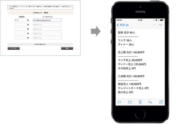 従来、翌日にFAXなどで確認することが多く見られた売上日報を、即座に把握できるようになります。最大5つのメールアドレスを登録でき、オーナーと店長が異なる場合や、複数店舗を経営するオーナーの利便性を向上します。