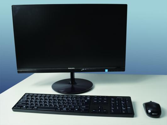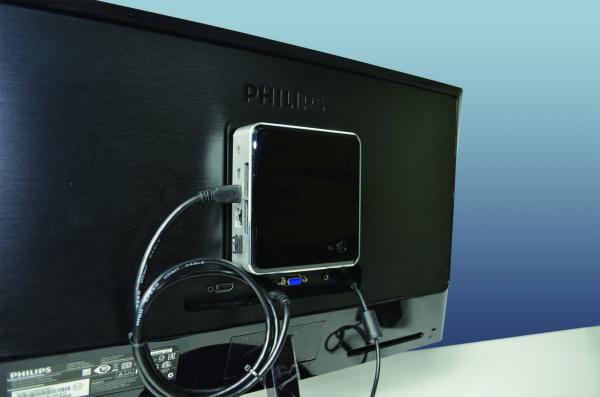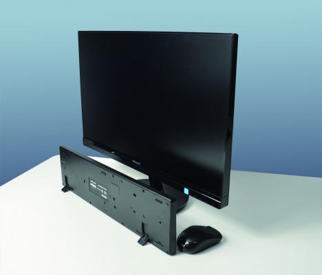 パソコン本体はモニタの背面に取り付けられ、机上のスペースを取らず配線が邪魔になることがありません。