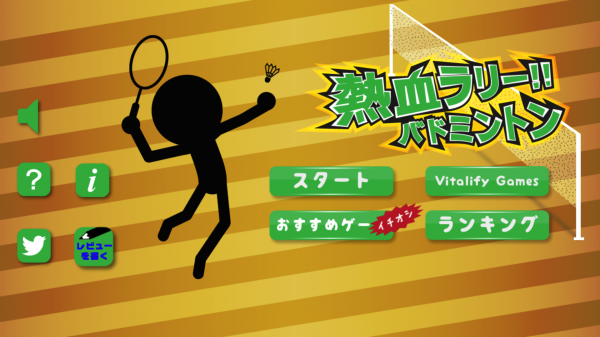 画面タップで、簡単にバドミントンのラリーを続けるゲームです。