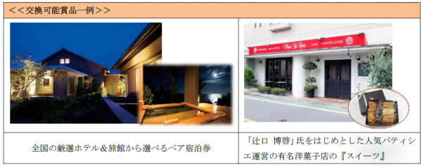 6月~8月のポイント交換賞品としては、『全国の厳選ホテル&旅館から選べるペア宿泊券』や、「辻口 博啓」氏をはじめとした人気パティシエ運営の有名洋菓子店の『スイーツ』などを取り揃えており、今後さらに拡充してまいります。この機会に是非、NCトレードポイントを貯めてお好きな賞品とご交換ください。