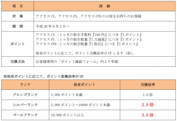 アクセスCX :1ヶ月の取引手数料『100円』につき『1ポイント』
