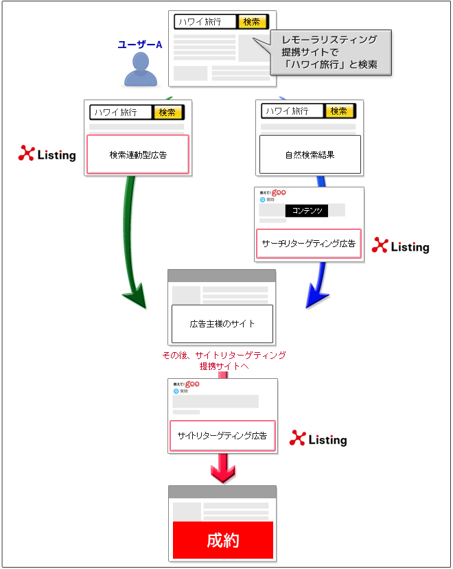 これまでレモーラリスティングでは、大手ポータルサイトの検索結果ページへ、検索キーワードに合った広告を配信する「検索連動型広告」と、大手QAサイトをはじめとした優良コンテンツページへ、ユーザーの検索傾向に合った広告を配信する「サーチリターゲティング広告」を提供してまいりました。