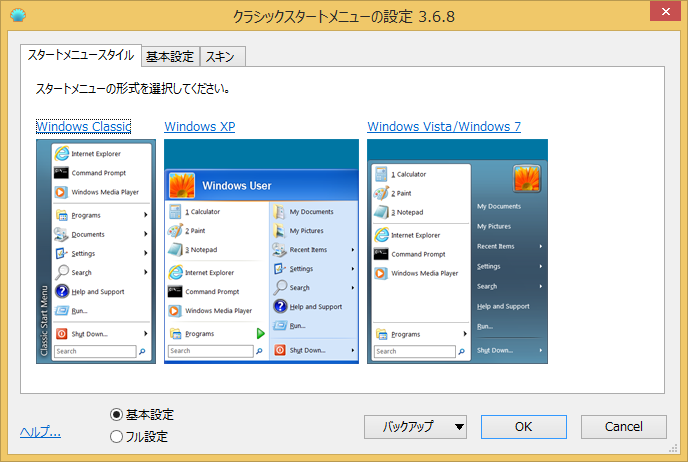 オープンソースで定評のあるフリーウェア「ClassicShell 3.6.8J」を標準装備。スタートボタンを追加します。