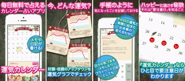 コンテンツ名称 【運気カレンダー】無料で毎日占って気づきをメモできるカレンダー占いアプリ
