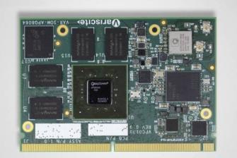 第一段として、Snapdragon600シリーズのAPQ8064採用しております。APQ8064は、Krait300コアプロセッサを採用しており、1.7GHzのクアッドとして動作します。また、Adreno320GPUとHexagon QDSP6が動作します。システムオンモジュール上には、このコアといっしょに、最大2GBのDDR3(通常オプション512MB、1GB)、最大64GBのeMMC(通常オプション4GB,8GB、16GB)、ギガイーサネットコントローラ、WiFi802.11a/b/g/n+オプションMIMO、Bluetooth4.0(QSA6234xモジュール)、WCD9311オーディオコーデック、RTCの機能が56mm×82mmに標準装備されています。キャリアボードとの接続は、MXM3.0コネクタ(信号312ピン)を介して、さまざまな信号が利用できるように設計さています。サポートOSは、Android4.2.2(2014年7月頃、Kitkat4.4サポート予定)、Linux(予定)です。